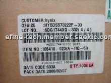 HY5DS573222F-33 features: (1)The Hynix HY5DS573222F(P) guarantee until 166MHz speed at DLL_off condition; (2)1.8V VDD and VDDQ wide range max power supply supports; (3)All inputs and outputs are compatible with SSTL_2 interface; (4)12mm x 12mm, 144ball FBGA with 0.8mm pin pitch; (5)Fully differential clock inputs (CK, /CK) operation; (6)Double data rate interface; (7)Source synchronous - data transaction aligned to bidirectional data strobe (DQS0 ~ DQS3) ; (8)Data outputs on DQS edges when read (edged DQ) Data inputs on DQS centers when write (centered DQ); (9)Data(DQ) and Write masks(DM) latched on the both rising and falling edges of the data strobe; (10)All addresses and control inputs except Data, Data strobes and Data masks latched on the rising edges of the clock; (11)Write mask byte controls by DM (DM0 ~ DM3); (12)Programmable /CAS Latency 5 / 4 supported; (13)Programmable Burst Length 2 / 4 / 8 with both sequential and interleave mode; (14)Internal 4 bank operations with single pulsed /RAS; (15)tRAS Lock-Out function supported; (16)Auto refresh and self refresh supported; (17)4096 refresh cycles / 32ms; (18)Half strength and Matched Impedance driver option.